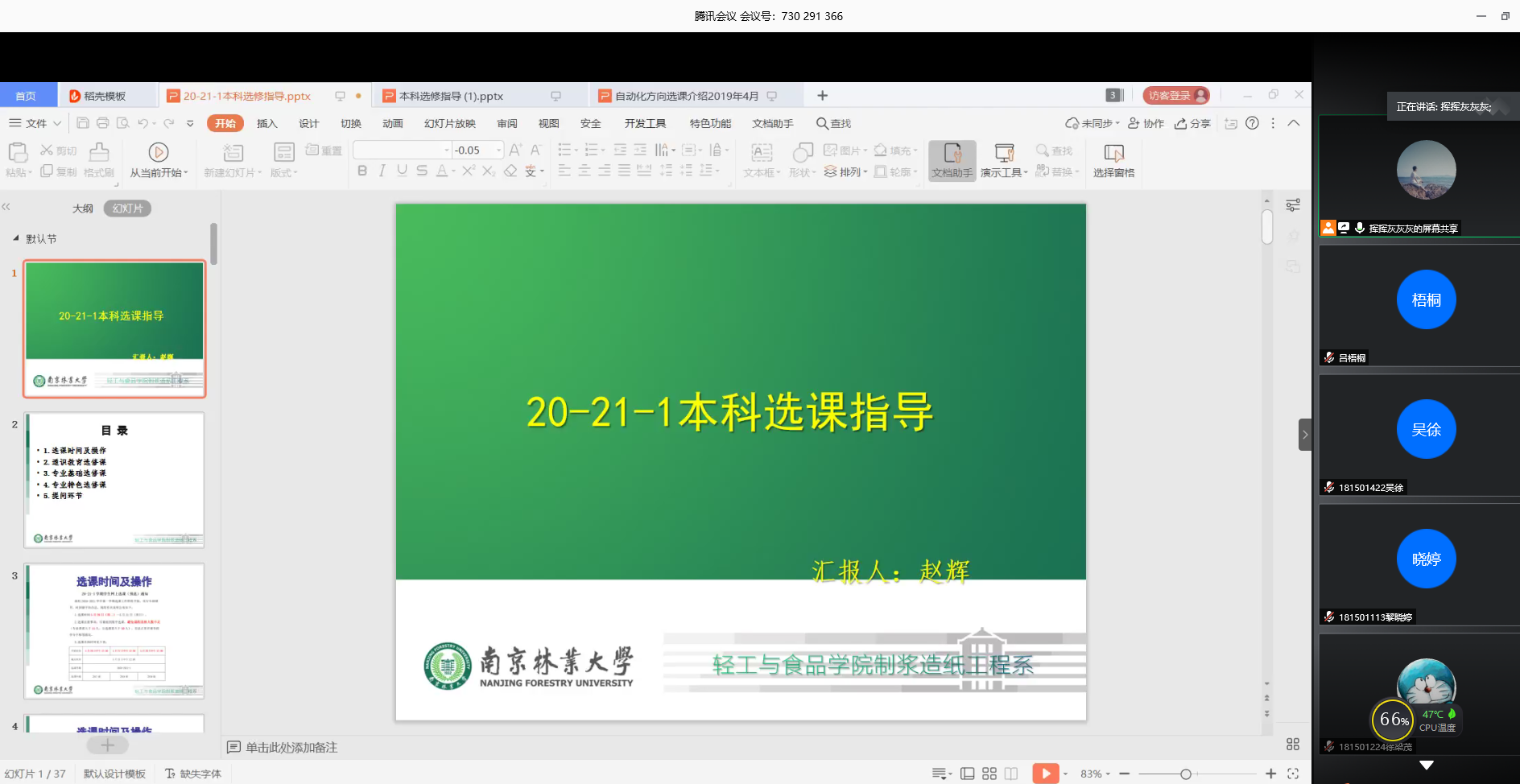 因为疫情原因,大多学生都未返校,为了让学生理性选课,对选修课程内容有所了解,避免盲从,制浆造纸工程系进行了详细的远程指导、讲解,针对每门课程的特点、授课要求等学生比较关心的问题做成幻灯片,介绍给学生,供学生选课时参考。这次选修课指导系里邀请了大四学长赵辉和王雪莹两位同学就选修课时间规定、系统操作要求做了说明,并就通识教育、专业基础、专业特色选修课做了详细解读。根据本科人才培养方案,轻化工程专业2020-2021学年第一学期涉及到的专业基础选修课有《工程CAD》、《线性代数》、《有机波谱分析》等多门课程;专业特色选修课有《植物纤维形态》、《纸和纸板结构与性能》、《制浆造纸专业英语》、《现代通信技术》等课程;通识教育选修课涵盖了人文社科类、艺术类、生态环境类、创新创业类等,对学分修读要求均有明确规定,提请学生注意。指导过程中就学生在选修过程中常遇到的问题也做了一一解答,同时强调,尽量做到集中选课,避免课程选修人数不足15人而无法正常开课现象。 (吴文娟)