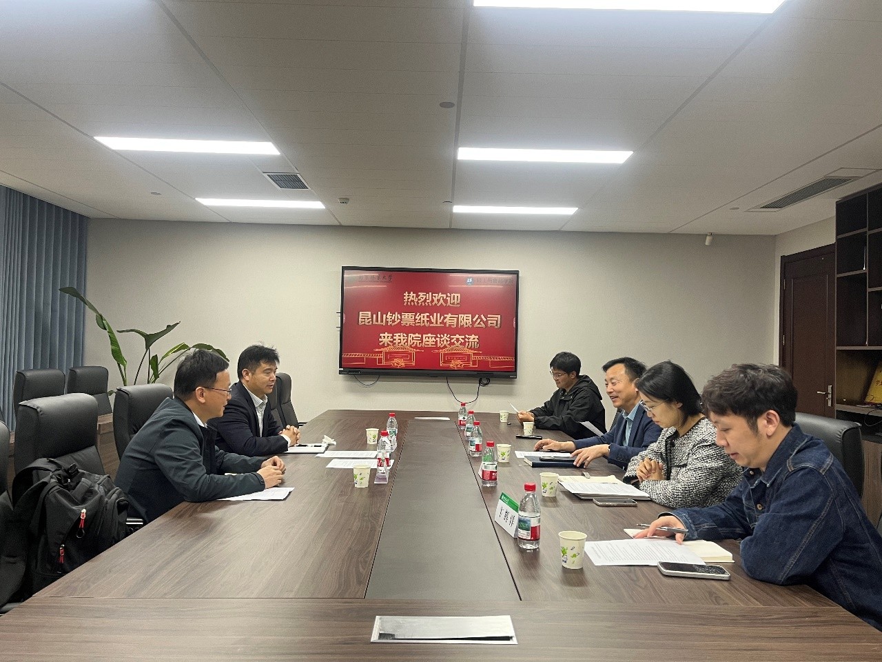 为进一步提升员工技术技能水平,帮助一线人员掌握制浆造纸领域的最新技术动态,4月20日,昆山钞票纸业有限公司(以下简称“昆钞”)冯建良、刘文利一行到访轻工与食品学院,双方在学院9E405会议室举行合作交流座谈会。学院院长王志国、院长助理周丹丹、制浆造纸工程系主任卞辉洋及部分教师代表出席会议。