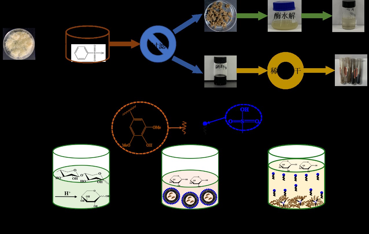 众所周知,预处理技术通过解聚致密的细胞壁结构、脱除木质素组分从而达到暴露纤维、克服生物质抗降解屏障的目的。本文介绍了一种新型固体酸苯磺酸在温和条件下(80℃)预处理解聚能源植物芒草的方法。研究结果发现,苯磺酸作为一种有机强酸(pKa=0.7,25℃)在水溶液中极易提供一个质子以催化水解或者参与反应,从而破坏碳水化合物、木质素以及木质素-碳水化合物复合体中的糖苷键、醚键和酯键。除此之外,苯磺酸作为一种助溶剂,在高于最小助溶剂浓度时通过与木质素形成π-π共轭结构或疏水相互作用形成胶束状聚集物,防止了木质素的缩聚,同时亲水端(磺酸根)指向水溶液从而有效溶解木质素。因此,苯磺酸能够促进木质素和半纤维素的快速溶出,在80℃,20 min的条件下实现90.8%的木质素和75.5%的半纤维素的脱除,芒草的纤维素转化率提高至97.9%。由于苯磺酸在室温下可重结晶回收,本研究为芒草等生物质原料的高效解聚和纤维素转化提供了一种绿色环保的新方法。